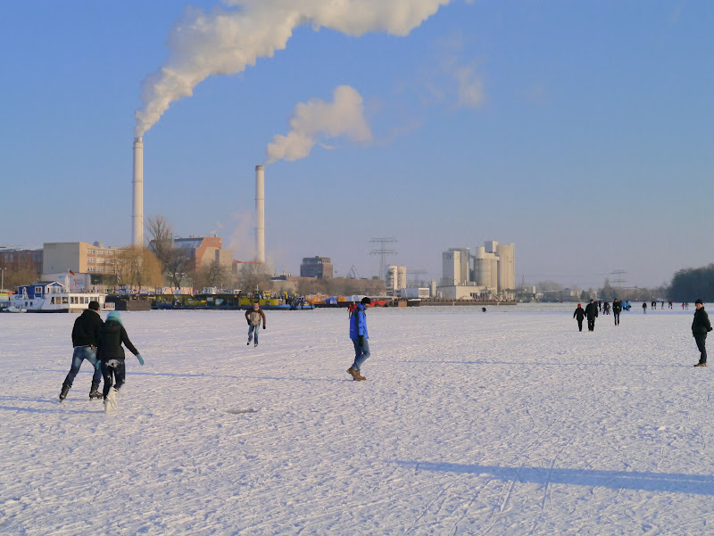 | Sortie à vélo sur les glaces de l’Urbanhafen, à Kreuzberg |