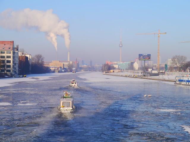 -15°C –– Parce que je ne me lasse pas d’admirer la Spree gelée ! Il faut me comprendre : j’ai découvert la neige à quinze ans, alors le spectacle d’une rivière qui gèle au beau milieu d’une capitale européenne me fascine à l’infini.