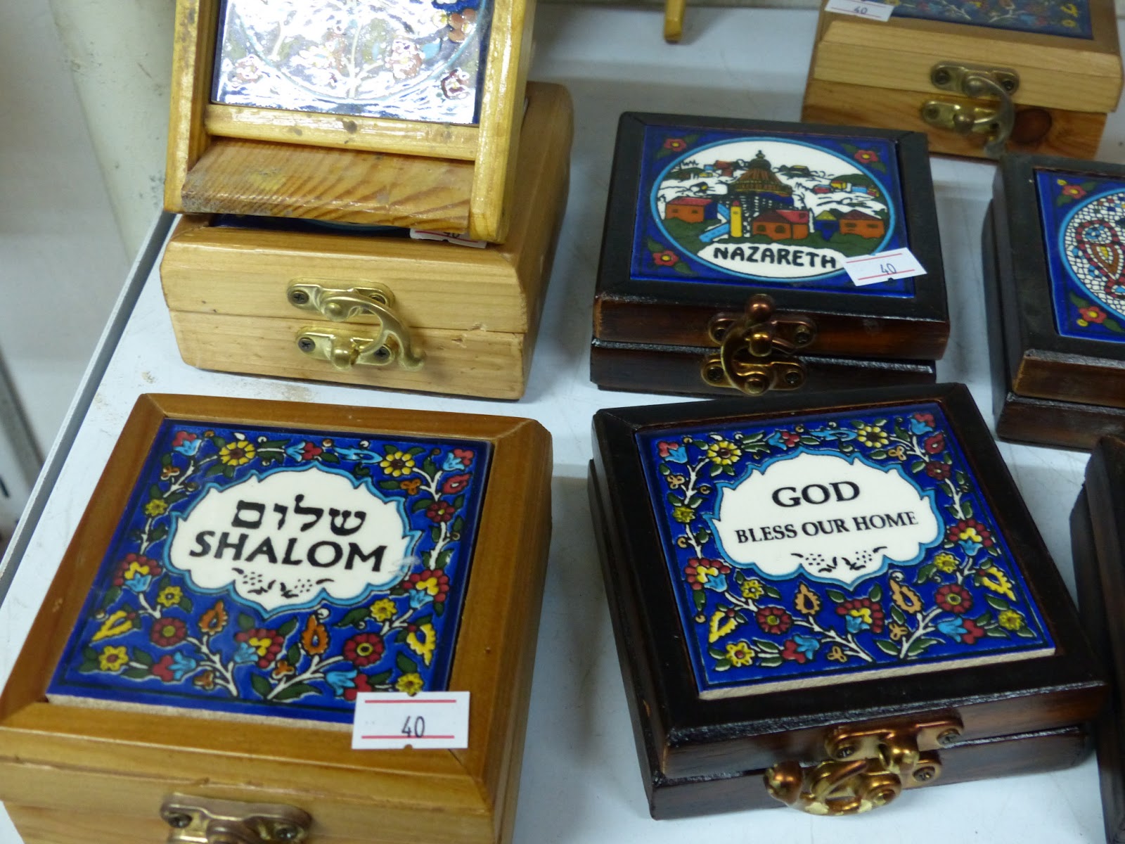 | Des boîtes en bois et en céramique assemblées et vendues à la manufacture de la famille Natsheh : même à Hébron, on aime le mot « shalom ». Car c’est l’un des plus beaux de la langue hébraïque. |