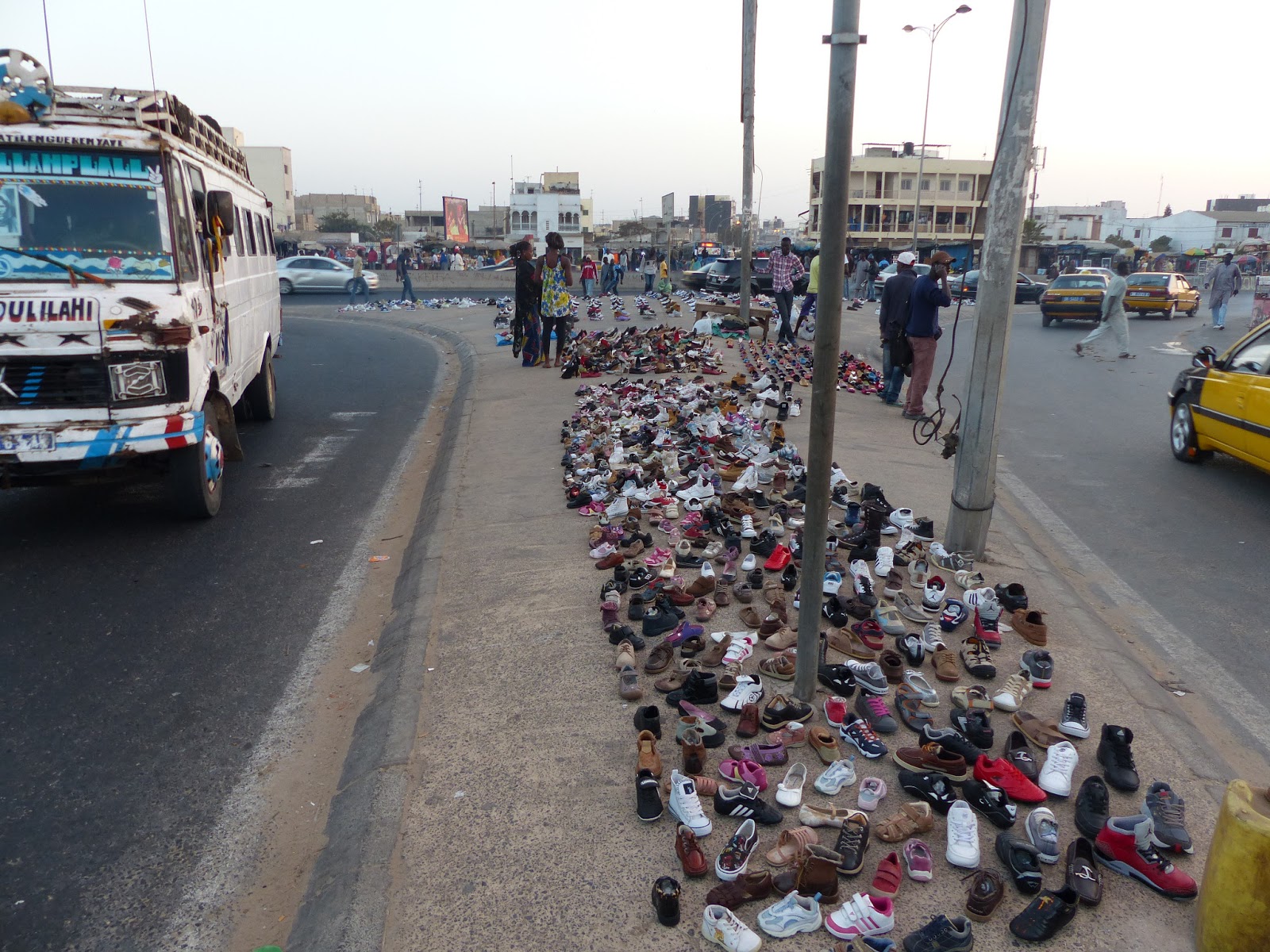 Le soir, dans les rues du quartier Patte d’Oie, chaque mètre carré de trottoir (ou arpent de sable) est transformé en étal improvisé. Tout s’achète et se vend. Des chaussures, des sacs, des flacons de parfum, de la literie, des enjoliveurs, des bijoux, des souvenirs, des fruits et légumes… Les vendeurs ambulants harcèlent les passants avec une insistance exaspérante. Là, des conversations montent soudain en éclat de voix. On croit au pugilat imminent, mais voilà que tout ça ce termine en un éclat de rire.